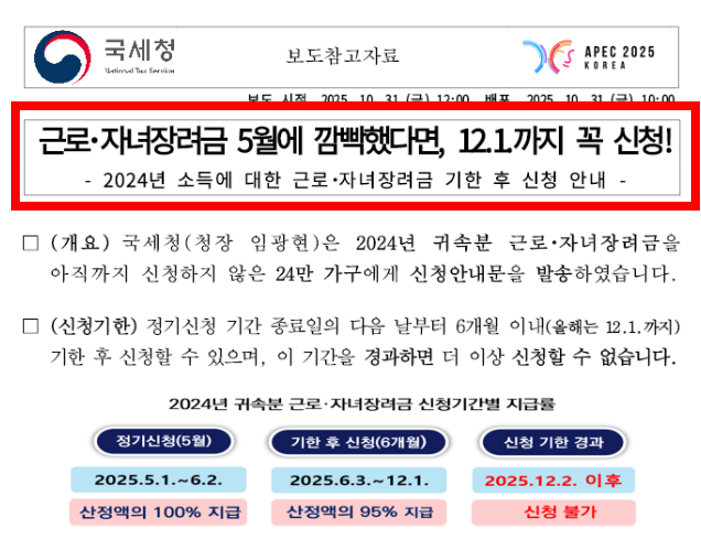 → 이 시기에 신청하면 다음 해 9월 전에 지급됩니다. - 반기신청