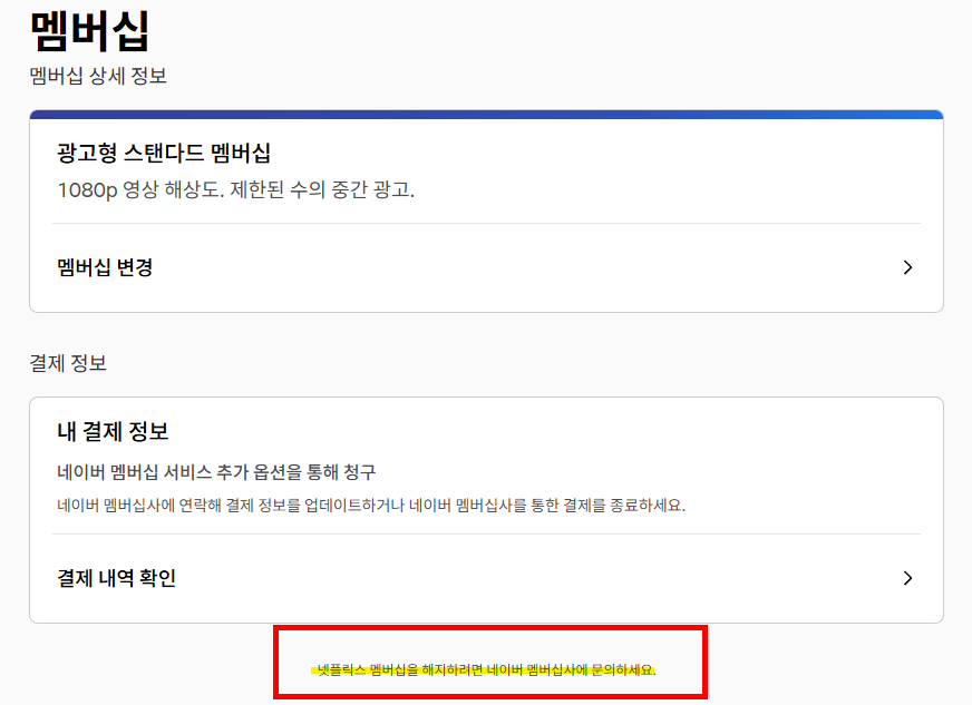 - 네이버 플러스 멤버십으로 넷플릭스 이용 시 해지는 네이버에서 가능합니다.