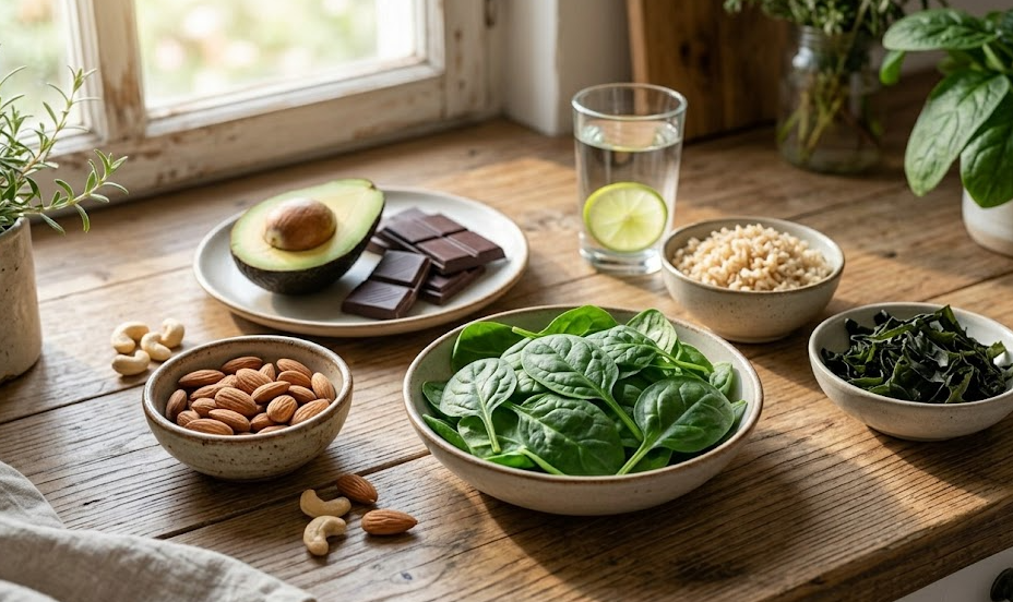 약보다 좋은 것은 식단입니다. 마그네슘 풍부한 음식을 통해 자연스럽게 보충하는 것이 가장 좋습니다.