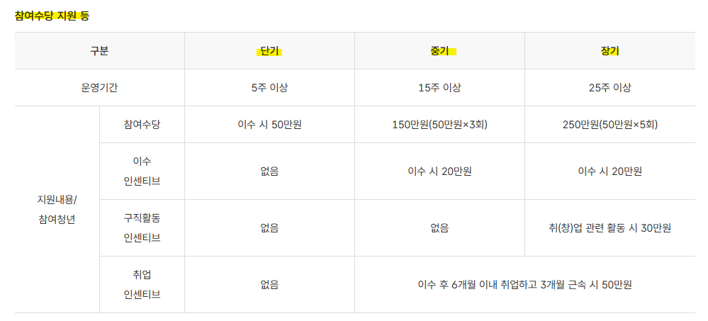 - 중기 프로그램은 취업준비 기간이 조금 더 필요하거나, 보다 체계적인 프로그램 참여를 통해 전환을 노리는 청년에게 유리합니다.